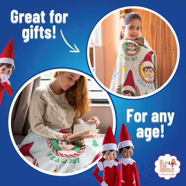 Snuggle up in the magic of The Elf on The Shelf® with our exclusive "Team Joy - Join the Fun" Throw Fleece Blanket. This officially licensed, limited edition piece is a must-have for any fan of the beloved holiday tradition.